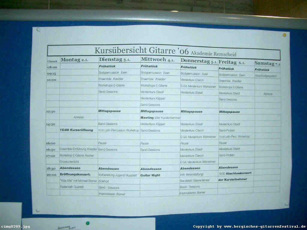 Der Kursplan (Aushang)