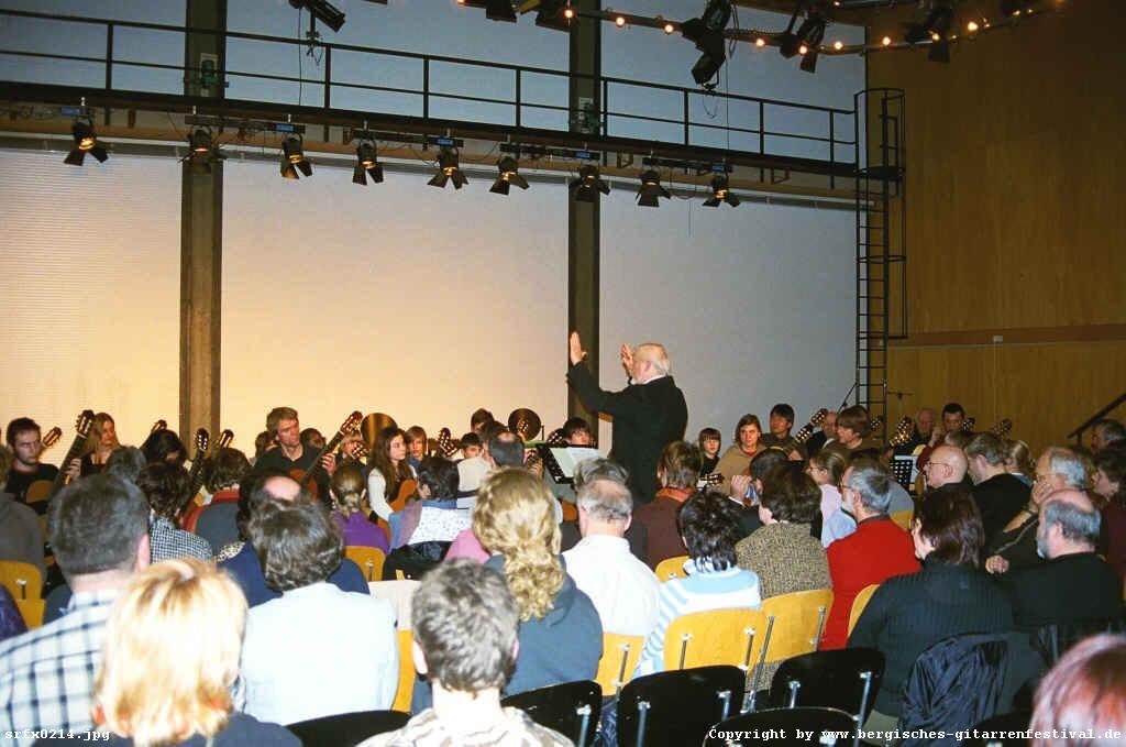 Abschlusskonzert der Teilnmehmer (Teil I: Konzertgitarre), hier: Prof. Dieter Kreidler mit dem Gitarrenensemble des Kurses