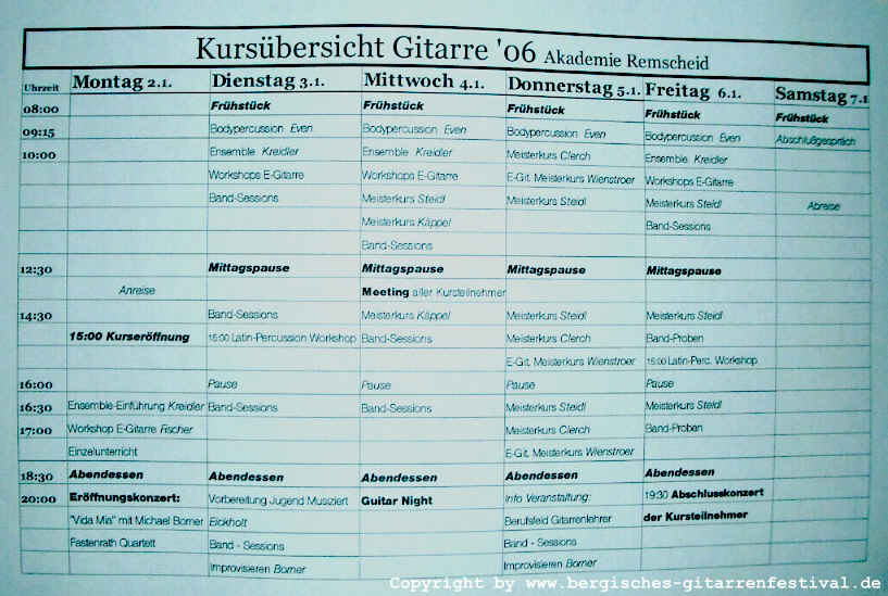 Gitarre E-Gitarre E-Bass Finger-Picking Blues-Harp Talentforum Bodypercussion Meisterkurse Seminare Einzel- und Forumsunterricht Jam-Sessions und Bandproben Bandpraxis Arrangements Ensemblespiel Ensembleleitung Interpretation Improvisation Begegnung Austausch Diskussionsforen Notenausstellungen Instrumentenausstellungen Historische Instrumente