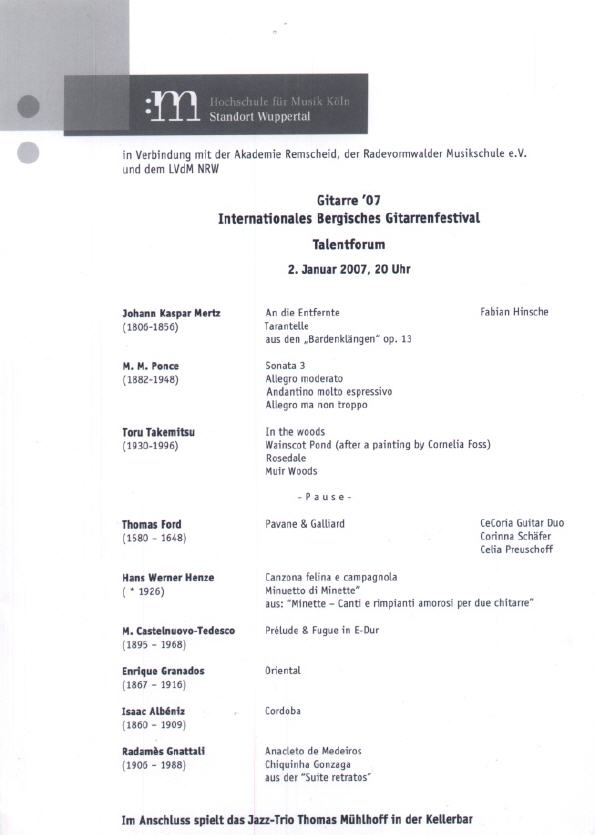 Die Teilnehmer und das Programm werden im Konzert bekanntgegeben.