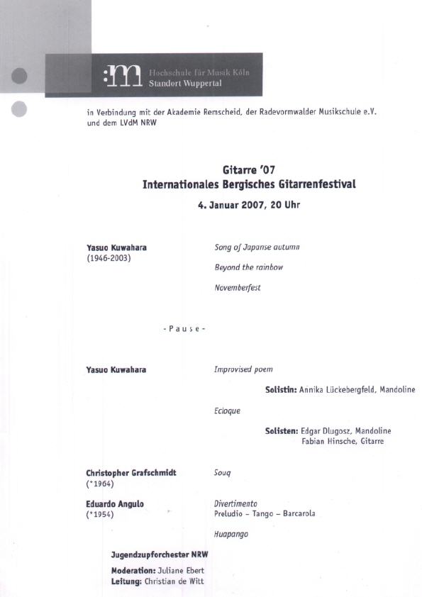 Das JZO NRW begeht im Jahre 2007 sein 30jähriges Bestehen. Ein Höhepunkt im Jubiläumsjahr wird das Konzert des JZO NRW "Touching of Spring"- (Werke von Yasuo Kuwahara) in der Philharmonie Essen am 15. April 2007 sein.